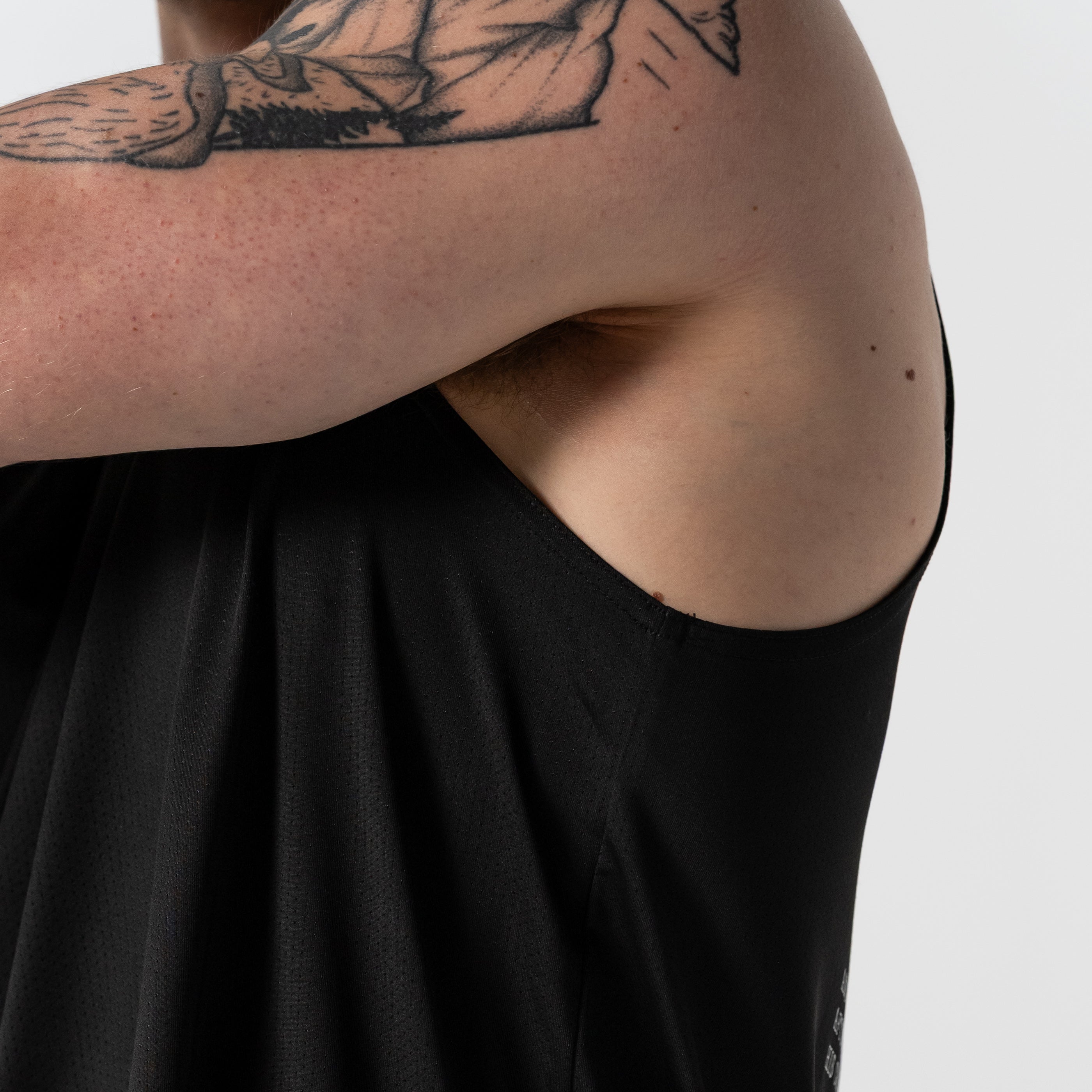 - Fit: Athletic silhouette with wide arm openings for full shoulder mobility